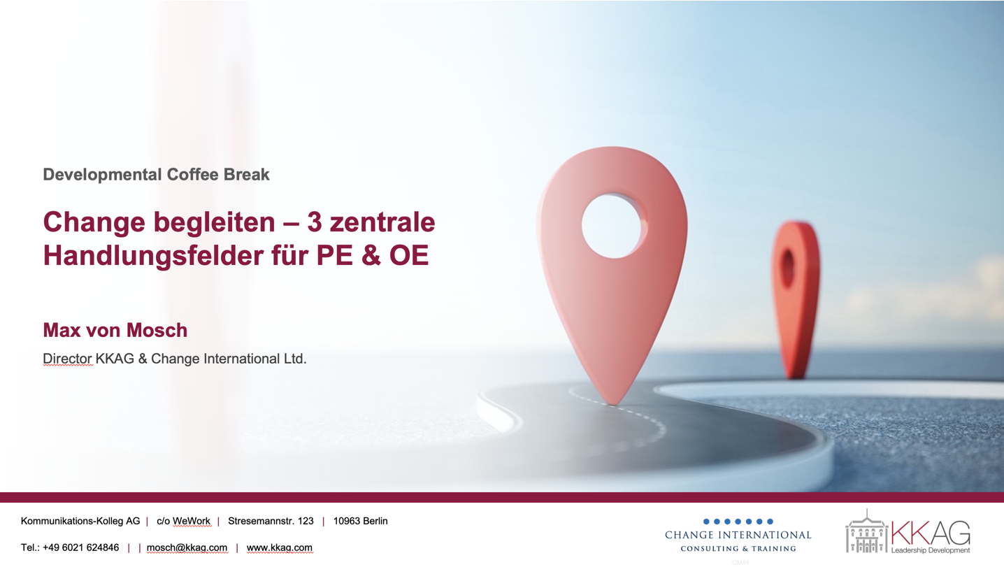 In diesem Developmental Coffee Break werfen wir einen praxisnahen Blick auf die Begleitung von Veränderungsprozessen – und zeigen, in welchen drei Handlungsfeldern Personal- und Organisationsentwicklung entscheidende Wirkung entfalten kann.